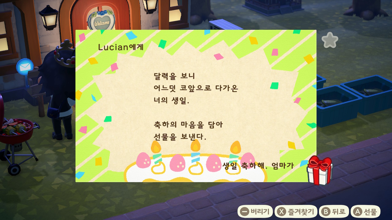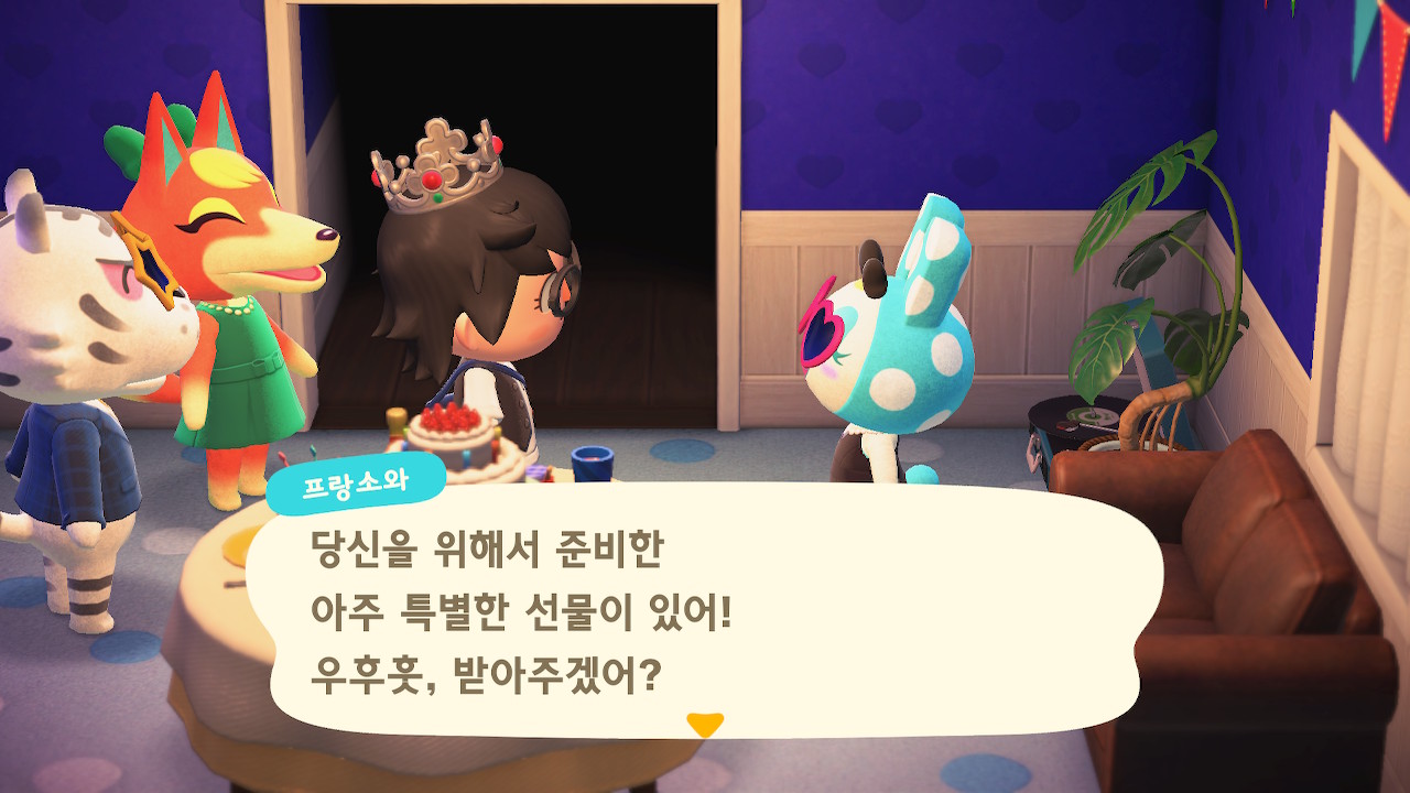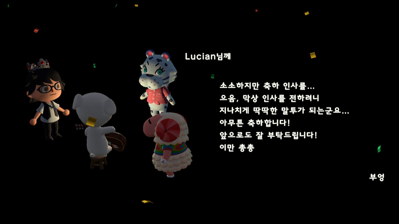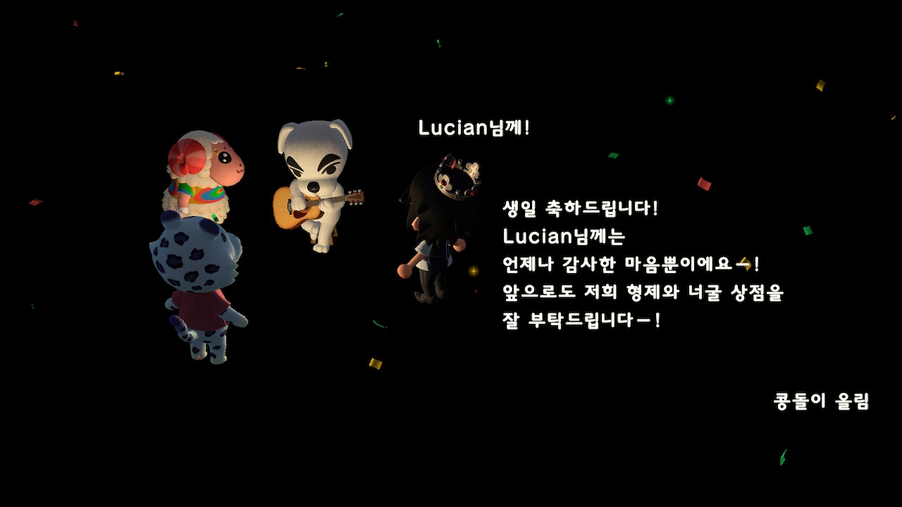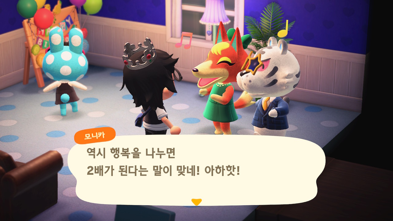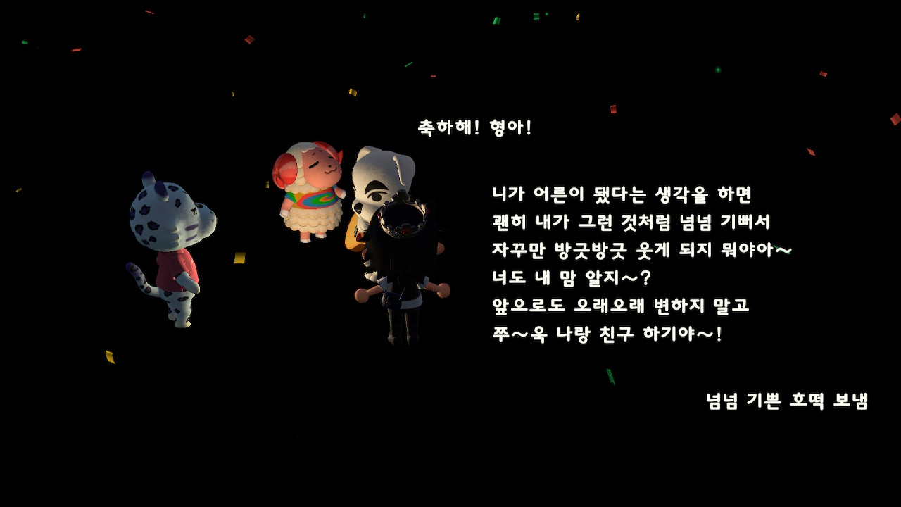 게임속 최애 주민들한테도 축하를 받는 즐거움을 지나칠 수 없기 때문에 ^^