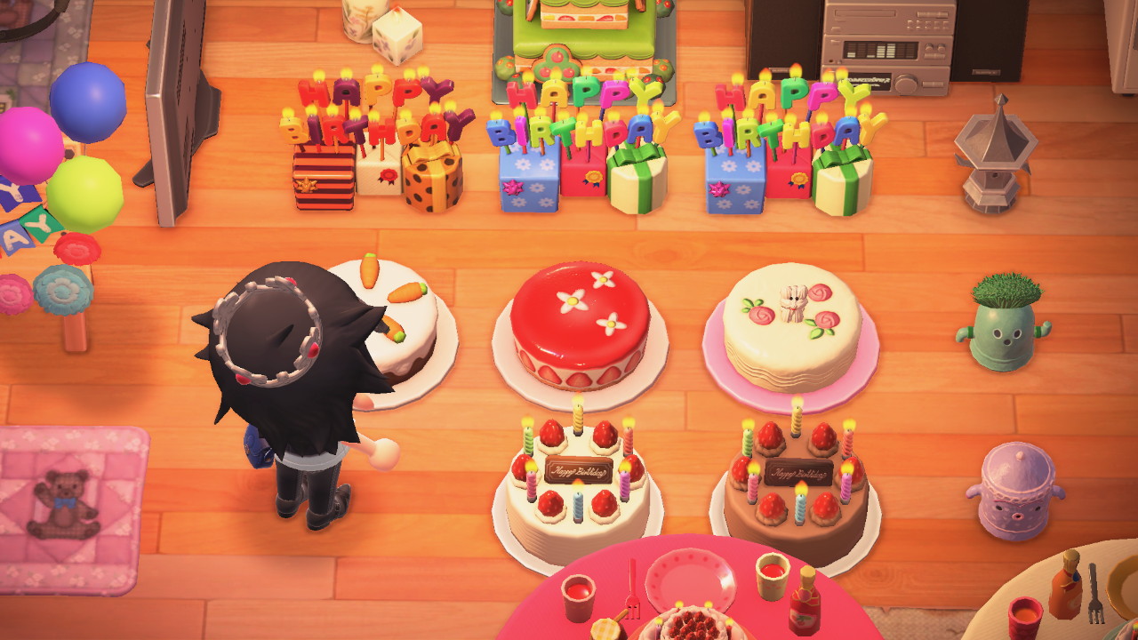 주민들의 생일축하 인사를 보며 컵케이크를 주고 생일 아이템들을 받았다.